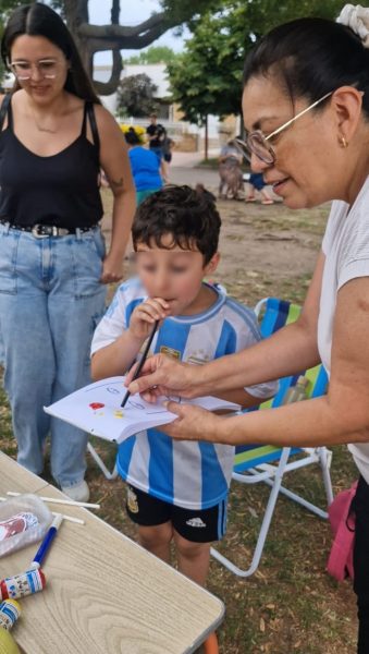 Las estudiantes y la docente Cristina Domínguez llevaron adelante la “Estación del Soplo”, un espacio lúdico diseñado para trabajar praxias orofaciales. A través del juego, los chicos ejercitaron y fortalecieron la musculatura esencial para el habla para promover el control del aire y la articulación de sonidos.