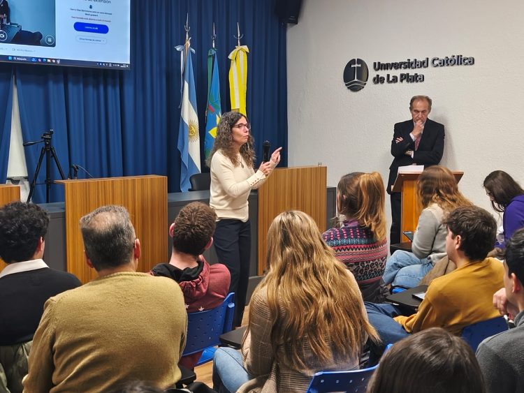 Natalia Quiñones (foto de abajo), docente e intérprete, explicó los motivos detrás de la coordinación de este conversatorio: “En eventos internacionales, muchos profesionales tienen dificultades para comunicarse usando el inglés, que suele ser el idioma más empleado. Entonces, esta fue una oportunidad genial para que ellos practiquen cómo va a ser su vida una vez que sean profesionales”.