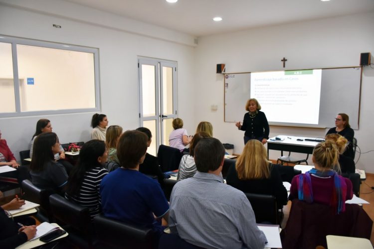 La Dra. Marta Kagel, Directora de Servicios Educativos de la UCALP, comentó, entre otros conceptos, que “el aprendizaje basado en casos tiene como características la utilización de casos como herramientas educativas; los casos pueden o no plantear situaciones o problemas, el alumno desarrolla propuestas de solución y los casos pueden ser reales o simulados”.