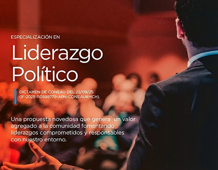 • Para ser admitido en la Especialización en liderazgo político, el postulante deberá contar con título universitario de grado o de nivel superior no universitario de cuatro (4) años de duración como mínimo, en alguna de las siguientes disciplinas Ciencia Política, Relaciones Internacionales, Abogacía, Administración, Ciencias de la Comunicación, Economía, Periodismo, Sociología, Trabajo Social, Recursos Humanos, Antropología y de otras áreas disciplinares que, a juicio del Comité Académico y en función de la experiencia laboral se encuentren vinculadas