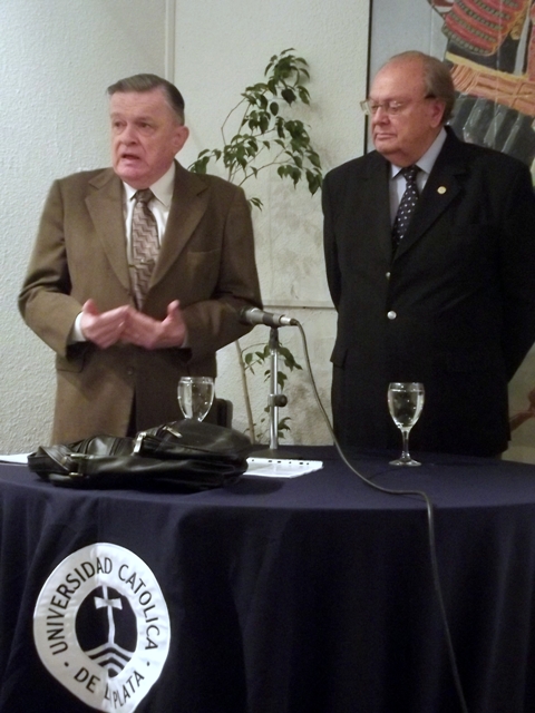 El Prof. Fernando de Estrada, Director del Instituto de la Realidad Nacional de la UCALP se encargó de la presentación del disertante y mencionó que si bien todos conocemos su batalla por la pureza del idioma, por la esplendidez de los valores culturales que se conservan en la Argentina a veces en ese sentido no se conocen tanto sus servicios como del tipo de actividades que está ejecutando ahora desde la Academia Nacional de Educación.