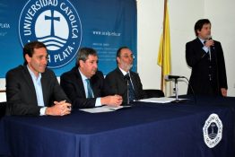 Previamente, los expositores mantuvieron un encuentro con el Rector de la UCALP, Dr. Hernán Mathieu, el Intendente de La Plata, Julio Garro, el Decano de la Facultad de Derecho y Ciencias Políticas, Dr. Claudio Castagnet y distintas autoridades académicas.