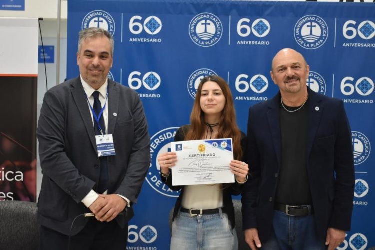 El director de la carrera de Ciencia Política y Relaciones Internacionales, Lic. Federico Gómez, entregó el reconocimiento a la ganadora del certamen junto al docente Roberto Coco. El primer premio fue otorgado a la estudiante de primer año Clara Quarteroni, quien presentó un póster titulado “Clístenes de Atenas: ¿Democracia eterna?”. (Cabe recordar que Clístenes de Atenas es reconocido como el reformador de la antigua Atenas y considerado el padre de la democracia).