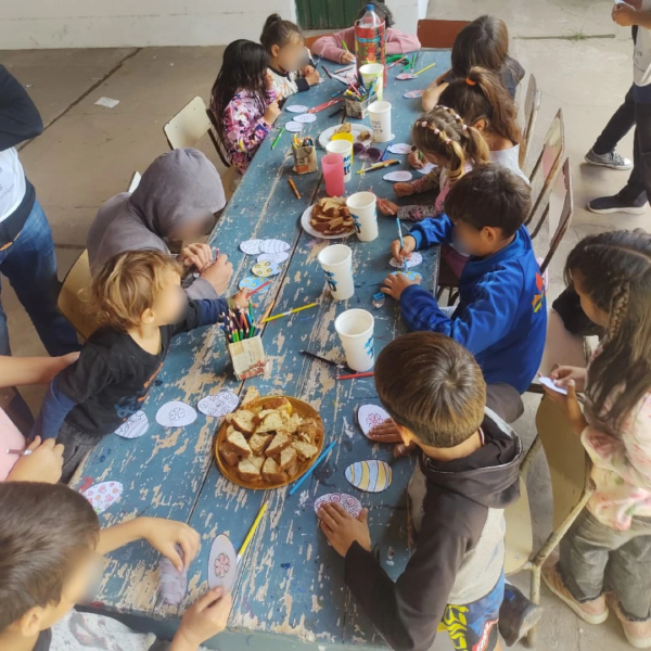 Con motivo de la Pascua, el Voluntariado decidió hacer una actividad distinta: en el patio del Centro, escondieron huevos de pascua de papel, que debían ser encontrados por los chicos para luego colorearlos y pintarlos. Además, en ellos debían escribir un deseo o una necesidad que tuvieran. Al finalizar, todos los huevos fueron pegados en una cruz de cartulina, que fue ofrecida a Jesús.