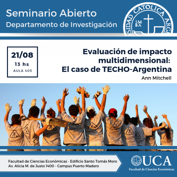 El miércoles 21 de agosto, el Observatorio Socioeconómico de la UCALP participó del Seminario Abierto “Evaluación de impacto multidimensional: El caso de TECHO Argentina” en la Facultad de Ciencias Económicas de la Universidad Católica Argentina (UCA).
