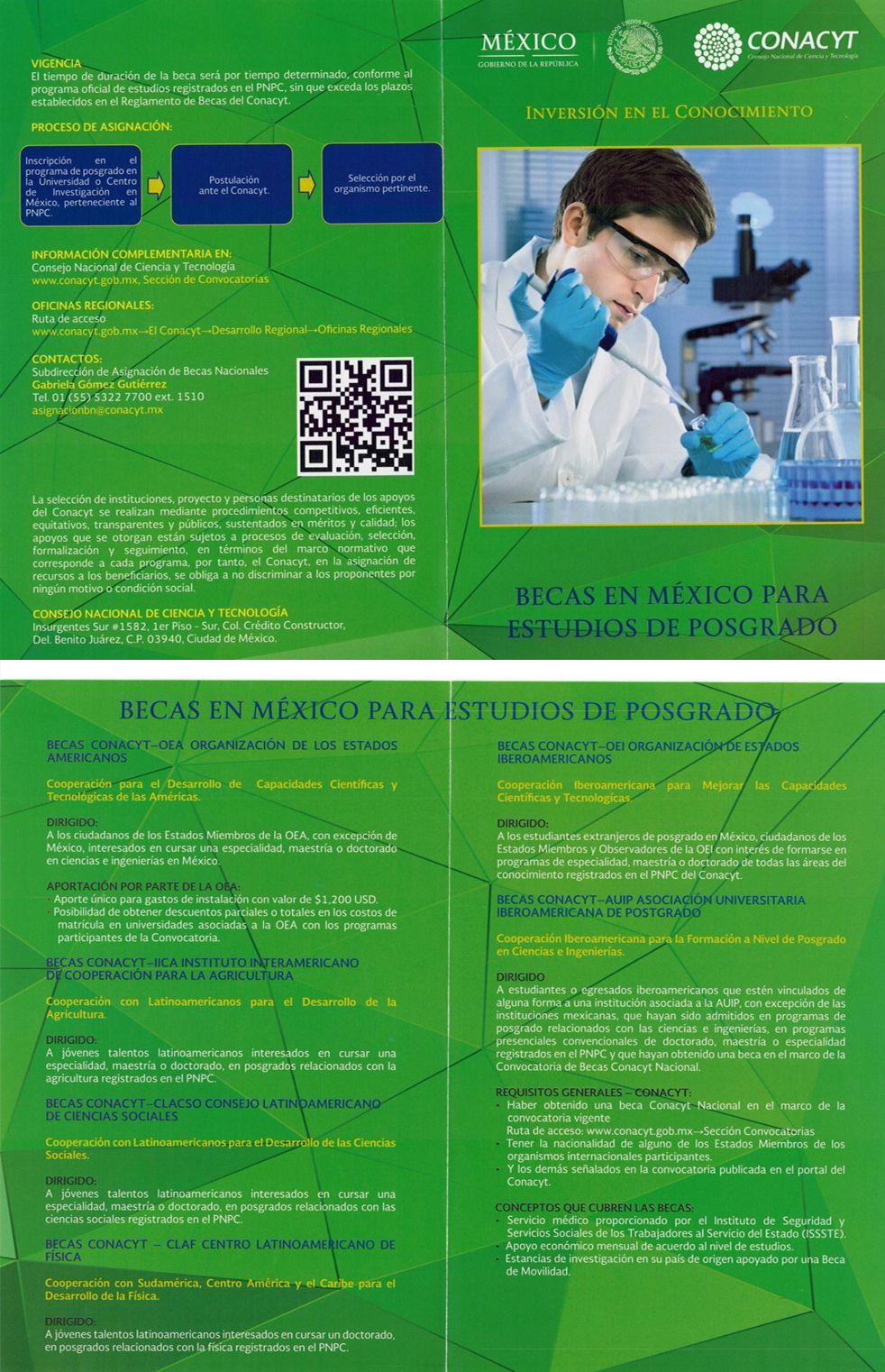 La Dirección de Relaciones Internacionales de la UCALP informa que el Concejo Nacional de Ciencia y Tecnología y el Gobierno de la República de México presentan la posibilidad de cursar una especialidad, una maestría o posgrados en diversas especialidades.