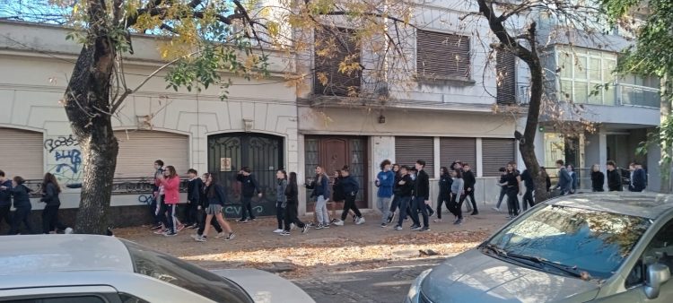Para completar el simulacro, fuera del establecimiento se encontraban referentes del Estrada con chalecos refractarios y señales de “Pare” –provistos por el Vicerrectorado de Administración-, que cortaron la calle para que los estudiantes cruzaran 58 en dirección al Club Atenas; allí se les explicó a todos los presentes los motivos de este simulacro y la importancia de reaccionar con celeridad ante una situación de emergencia.