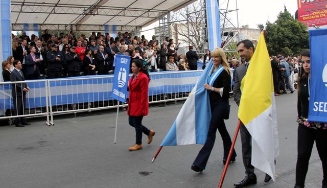 Ante una multitud que colmó la Av. Hipólito Yrigoyen a lo largo de todo el trayecto, la delegación de nuestra Universidad compuesta de alumnos, docentes y familiares desfilaron encabezados por el Coordinador de Extensión Sr. Ramiro Guede, siendo recibidos por el público asistente con innumerables muestras de afecto y reconocimiento, siendo la única Universidad presente en tan importante acto institucional.