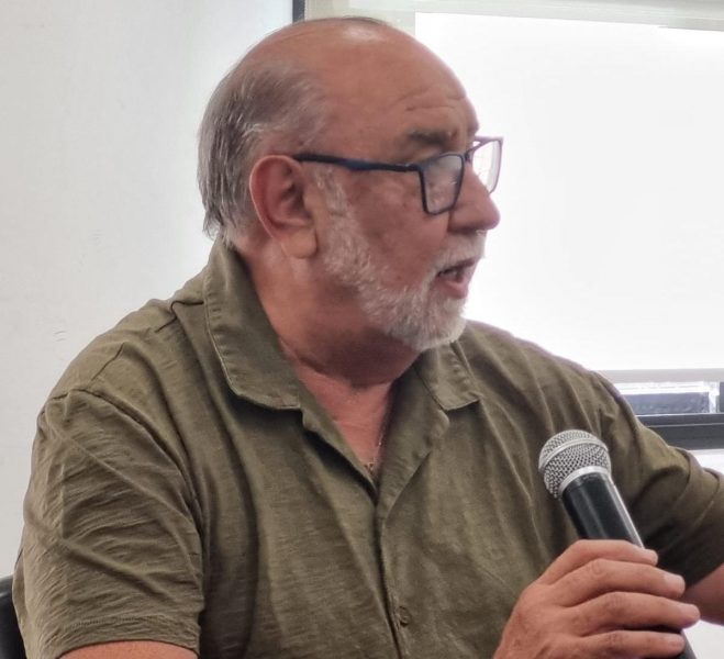 En el marco del encuentro, el secretario general de SOSBA, el geólogo especializado en hidrogeología Julio Castro (foto de abajo), expuso los lineamientos del Plan Maestro Hídrico para la Provincia de Buenos Aires, abordando aspectos técnicos sobre el recurso hídrico en el territorio bonaerense.