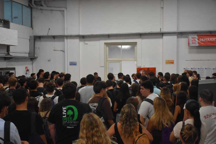La bienvenida a los nuevos ingresantes, en el hall de Derecho