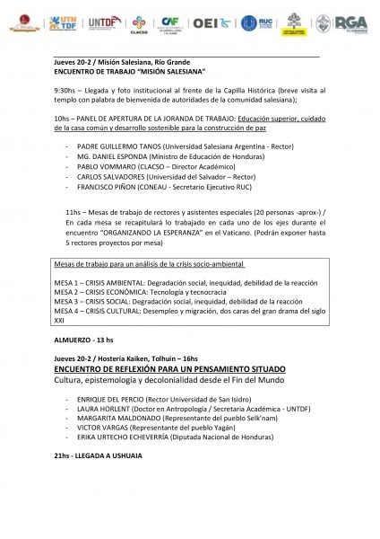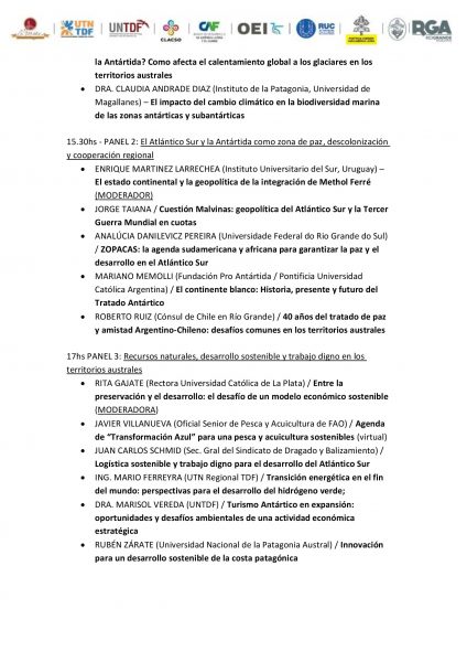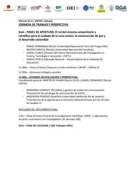Por la UCALP participa la rectora, Prof. Rita Gajate, quien oficiará como moderadora del panel sobre recursos naturales, desarrollo sostenible y trabajo digno en los territorios australes. Será a las 17 horas y el tema puntual que moderará -incluido en ese panel- es “Entre la preservación y el desarrollo: el desafío de un modelo económico sostenible”.