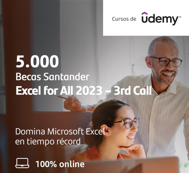 • Becas Santander | Excel for All 2023 – Udemy (3rd Call). Categoría: Habilidades digitales. Inscripciones abiertas hasta el 7/11/23. Resumen: Si necesitas dominar Excel, aplica a una de las 5.000 becas disponibles de Becas Santander | Excel for All 2023 3rd Call, y aprende con uno de los mejores y más completos cursos del mercado a través de un líder en formación digital como es Udemy. UTM Redes: http://app.becas-santander.com/es/program/becas-santander-excel-for-all-2023-3rd-call