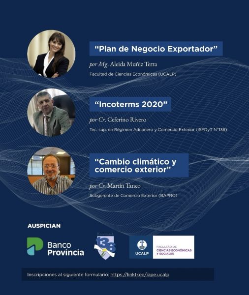 Destacados expertos del sector abordarán temas relevantes: la Mg. Aleida Muñiz Terra presentará un “Plan de Negocios Exportador” para ingresar a mercados internacionales; el Cr. Ceferino Rivero explicará las actualizaciones de los “Incoterms 2020”; y el Cr. Martín Tanco discutirá el impacto del “Cambio Climático en el Comercio Exterior”.
