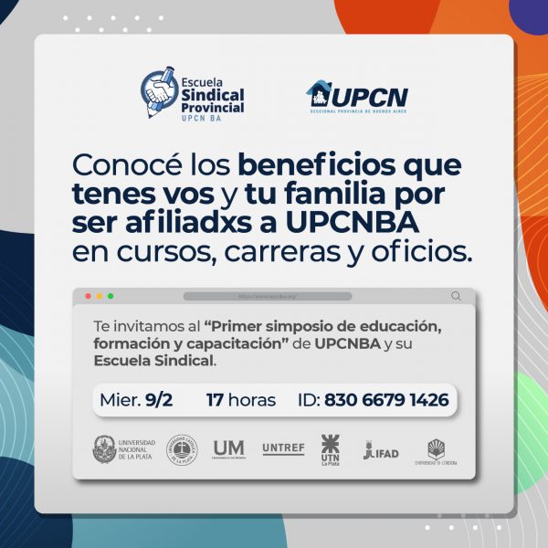 El miércoles 9 de febrero a las 17, la Unión del Personal Civil de la Nación (UPCN), seccional provincia de Buenos Aires, realizará esta actividad (plataforma Zoom) para dar a conocer a sus afiliados las distintas propuestas educativas con las que cuentan las universidades e institutos terciarios de la ciudad de La Plata.