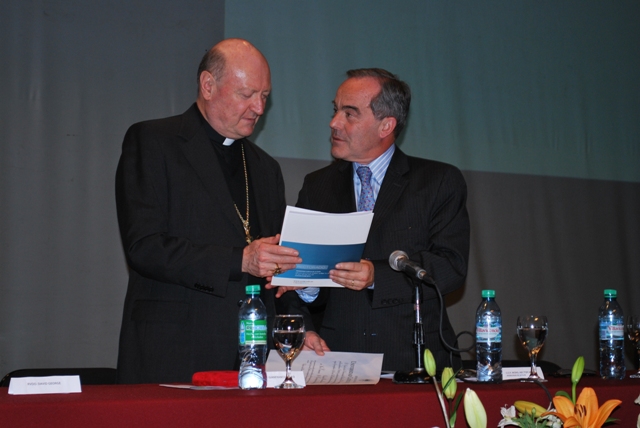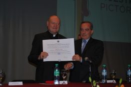 El Arzobispo de La Plata y Gran Canciller de la UCALP, Monseñor Héctor Aguer, destacó que “estas distinciones que se llaman doctorados honoris causa deberían llamarse operis causa o laboris causa porque se otorga a las personas que se han destacado por una obra importante en el campo de la cultura y yo lo asociaría al hecho que nuestra modesta universidad le otorga a un personaje eminente de la Iglesia y del mundo de la cultura esta sencilla distinción”.