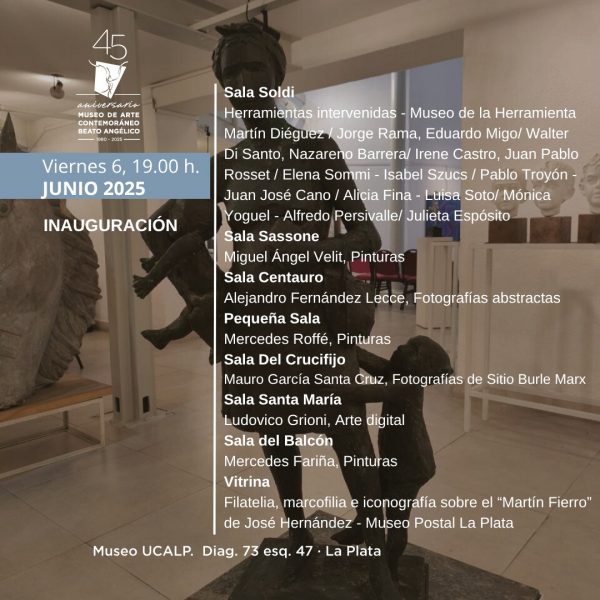 Mes a mes el Museo de Arte Contemporáneo Beato Angélico de la UCALP -diagonal 73 esquina 47-, que dirige Walter Di Santo, renueva su compromiso con el arte y demuestra ser uno de los principales centros culturales de la región, donde numerosos pintores, escultores y referentes de distintas ramas artísticas encuentran un espacio para exponer sus obras.