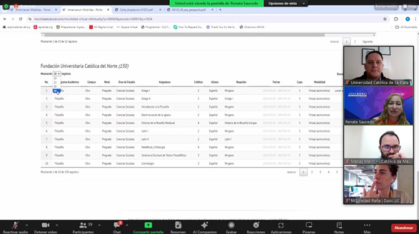 El motivo de esta sesión fue la operación y uso de la plataforma Americarum Mobilitas, de intercambios estudiantiles, y Augere Universitas, de pasantías para académicos y administrativos.