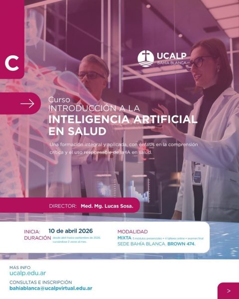 “Introducción a la Inteligencia Artificial en Salud” apunta a una formación integral y aplicada, con énfasis en la comprensión crítica y el uso responsable de la IA en el ámbito sanitario. La actividad comenzará el 10 de abril de 2026, tendrá modalidad mixta y se desarrollará en la sede ubicada en Brown 474.