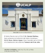 Invitación a la celebración del solemne Tedeum del 9 de julio