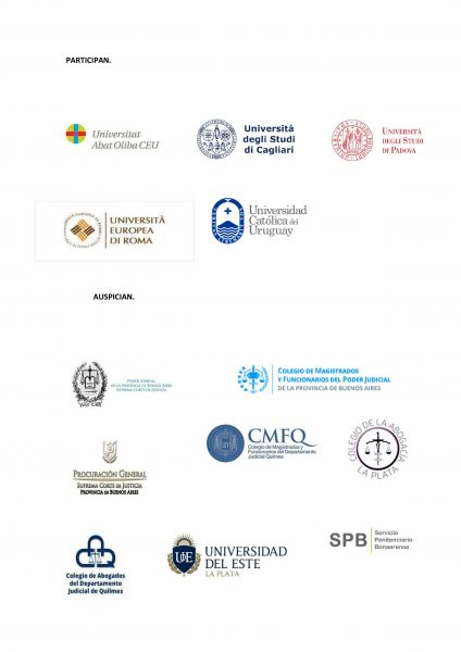 - Suprema Corte de la Provincia de Buenos Aires – Procuración General de la SCJBA – Facultad de Derecho y Ciencias Sociales de la Universidad del Este – Colegio de Magistrados y Funcionarios de la Provincia de Buenos Aires – Colegio de Magistrados y Funcionarios de Quilmes – Colegio de abogados de la Provincia de Buenos Aires – Colegio de Abogados de Quilmes – Colegio de Abogados de La Plata – Servicio Penitenciario Bonaerense.