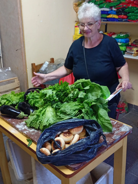 Una de las cocineras de Vino la Vianda, con las donaciones